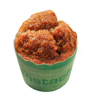 A soft, moist French Baby Cake with a strong pistachio flavor. Made from pure pistachio paste and finely ground pistachios.